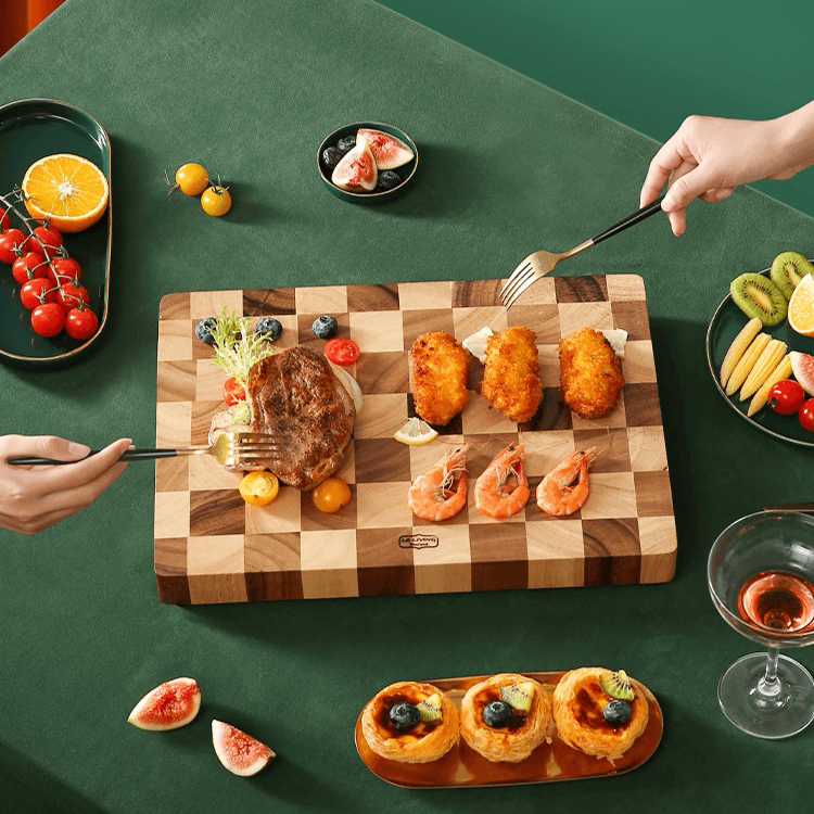 Thai End Grain Acacia Wood Checkerboard Style Butcher Board with Build-in Handle and feet