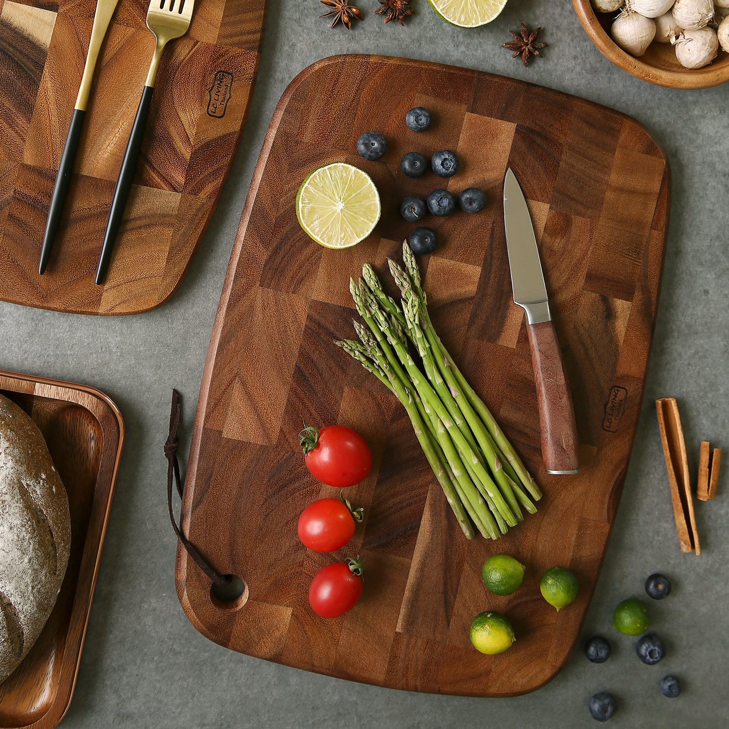 Thai End Grain Acacia Wood Grande Rectangular Cutting Board with Feet